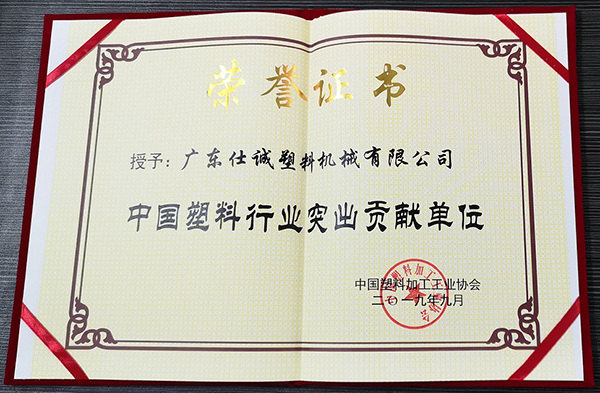熱烈祝賀仕誠公司被授予“中國塑料行業(yè)突出貢獻(xiàn)企業(yè)”